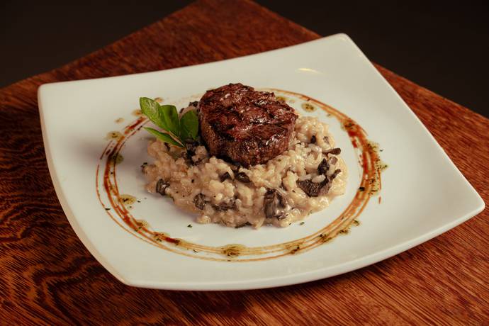 Na compra desse steak você tem direito a dois acompanhamentos .